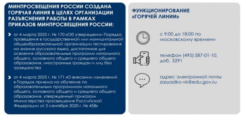 Приказ министерства образования и науки Нижегородской области от 19.08.2025 №316-01-63-1745/25 "Об организации работы "горячих линий" по проведению тестирования на знание русского языка, достаточного для освоения образовательных программ начального общего, основного общего и среднего общего образования, иностранных граждан и лиц без гражданства на территории Нижегородской области "